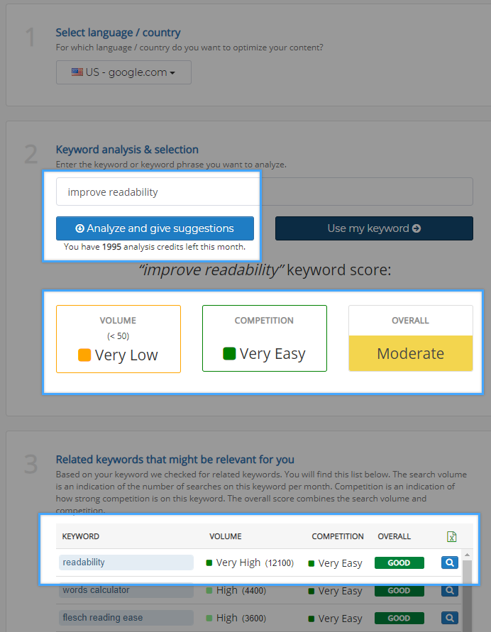 Zoektermen zijn woorden en zinnen in je webcontent waarmee mensen je site kunnen vinden via zoekmachines. Met Textmetrics kun je zoektermen analyseren en vaststellen hoe sterk ze zijn, met behulp van een samengestelde score van zoekvolume en concurrentie. Daarnaast kun je met deze tool gerelateerde zoektermen voor je onderwerp vinden, om de beste zoekwoorden te kiezen.