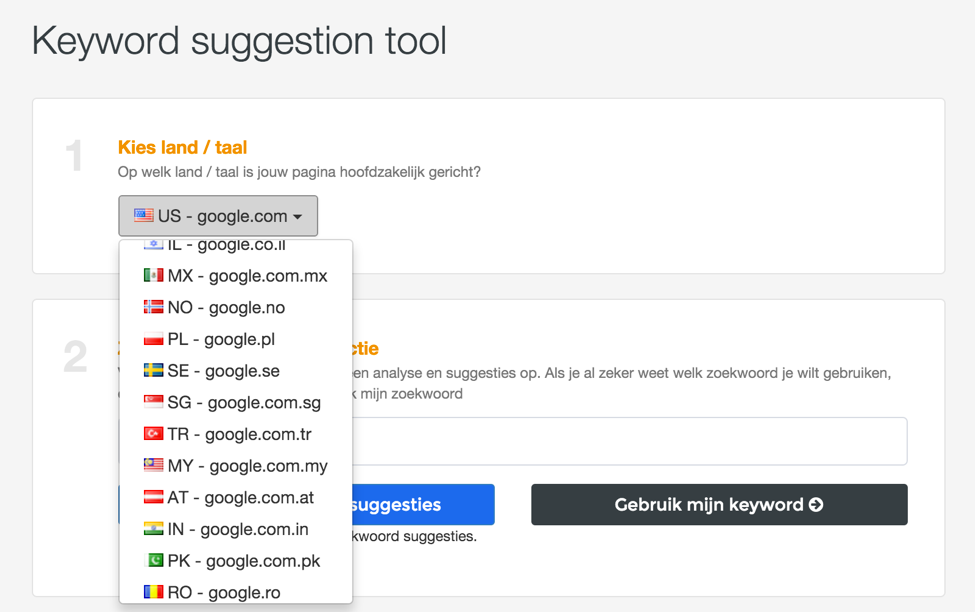 In de uitgebreide Keyword Suggestion Tool helpen we gebruikers bij het vinden van het beste zoekwoord voor hun tekst. Momenteel kan er geoptimaliseerd worden voor meer dan 20 talen. De talen die zijn toegevoegd in de laatste release zijn: Portugees, Spaans, Hindi, Urdu en Maleis.