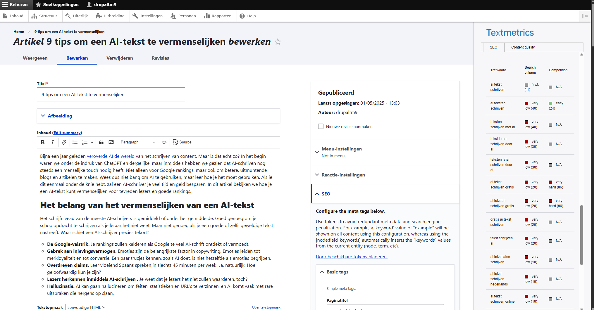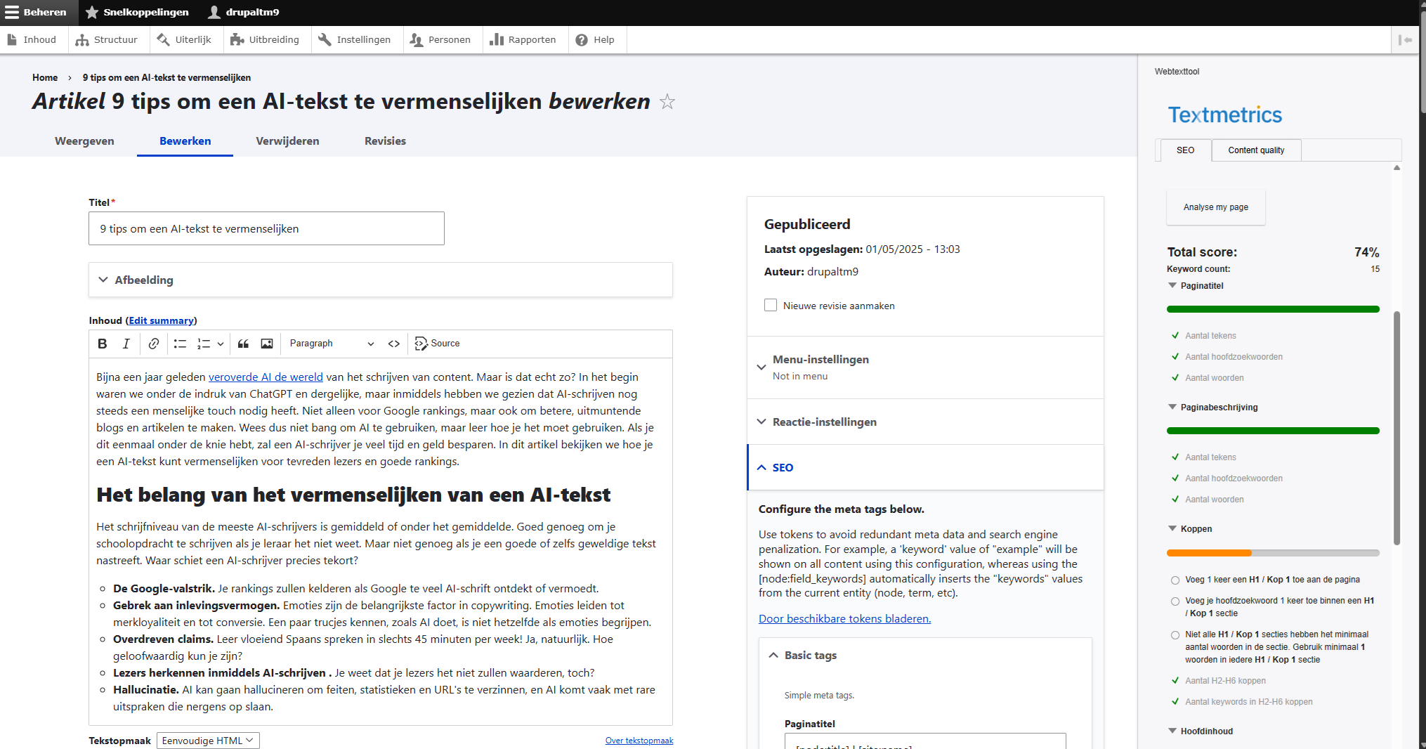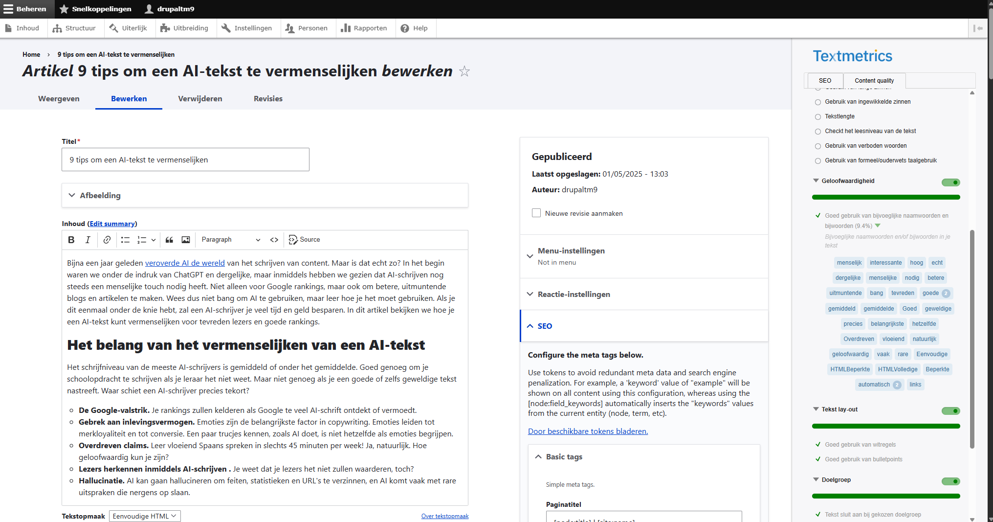 Textmetrics voor Drupal CMS