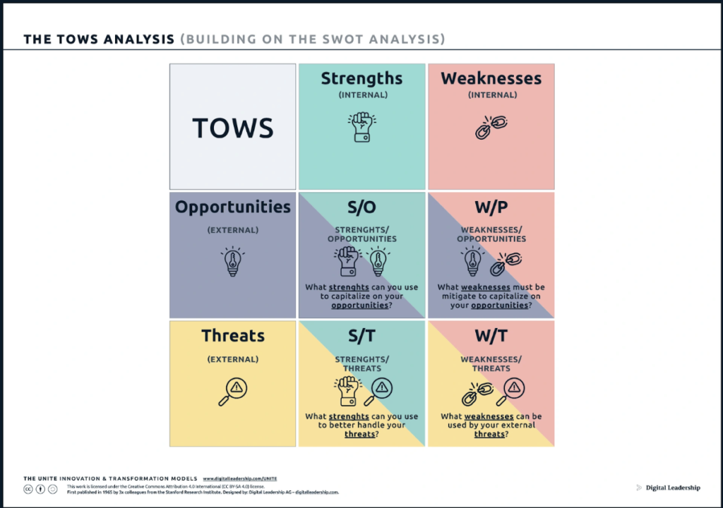 Alt: TOWS analysis can help you summarize your takeaways and see the next steps