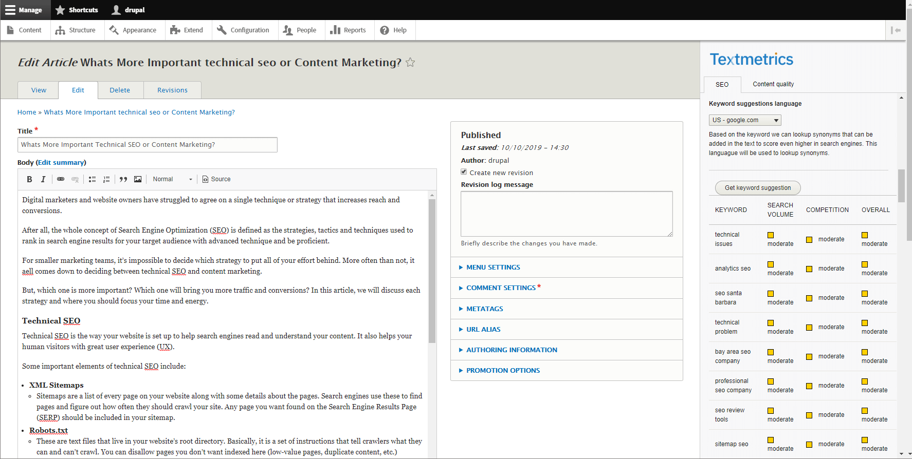Textmetrics for Drupal CMS