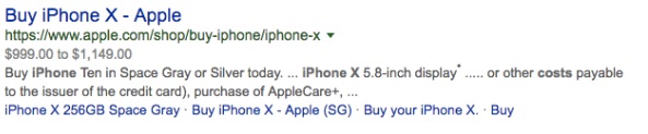 Consider product information: what is the cost of an iPhone X?