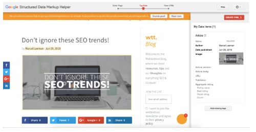 Once you’ve tagged all the relevant data, simply click on ‘Create HTML’ to create the code that you can add to the head section of your page.